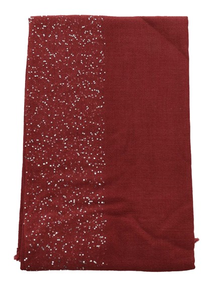 Sciarpa in lana vergine e seta, applicazione micro paillettes